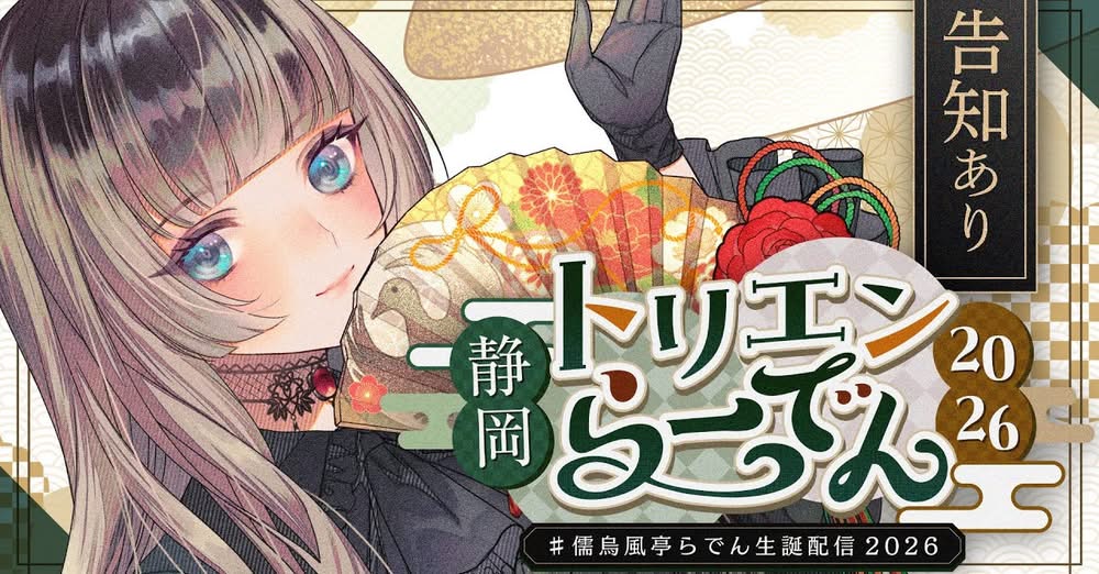 2月4日(水)21時から配信の、儒烏風亭らでんさんの「静岡トリエンらーでん2026」内で出演します。
