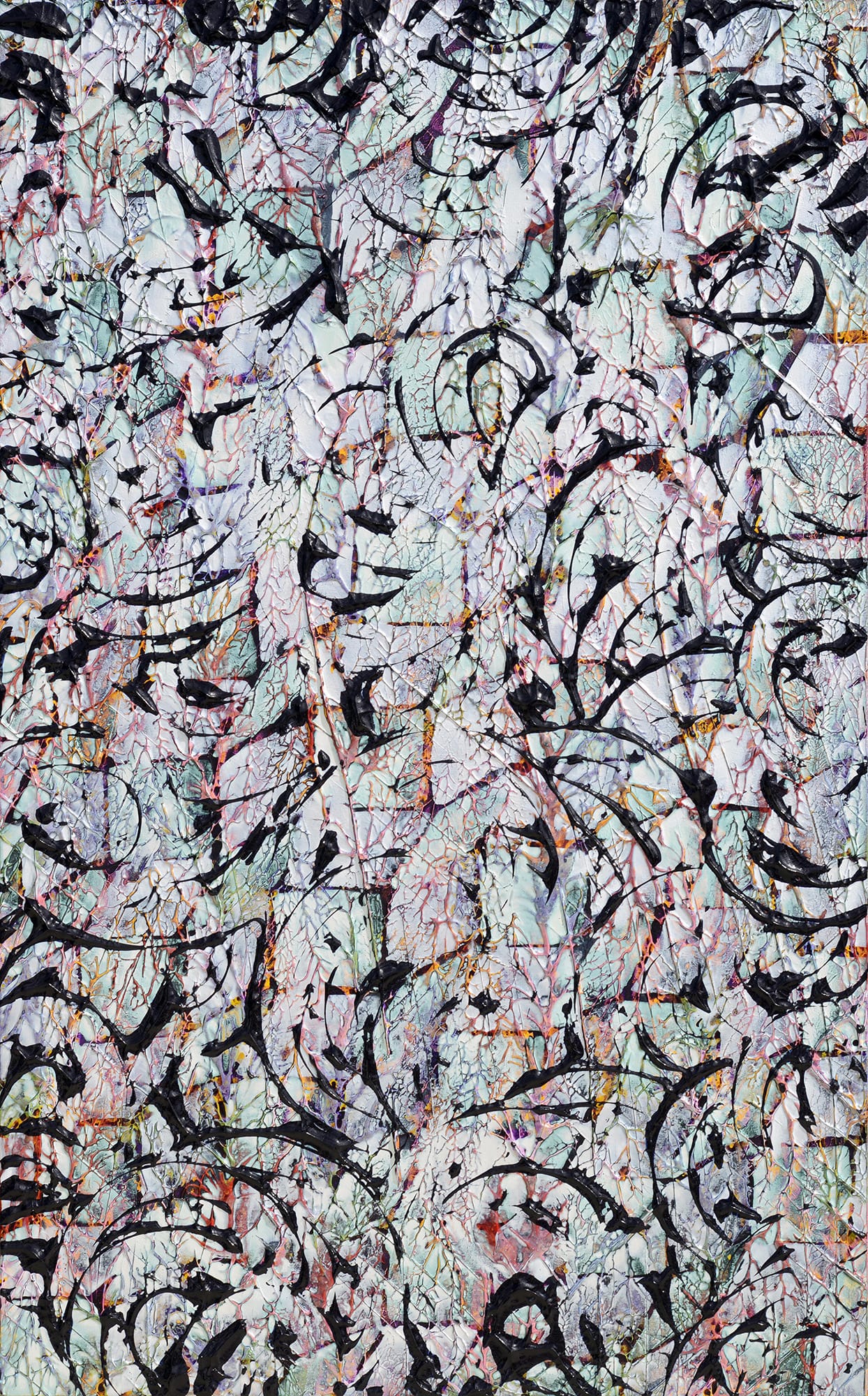 | helter skelter 2019 Acrylic and Carborundum on cotton 2273×1445mm Private Collection |