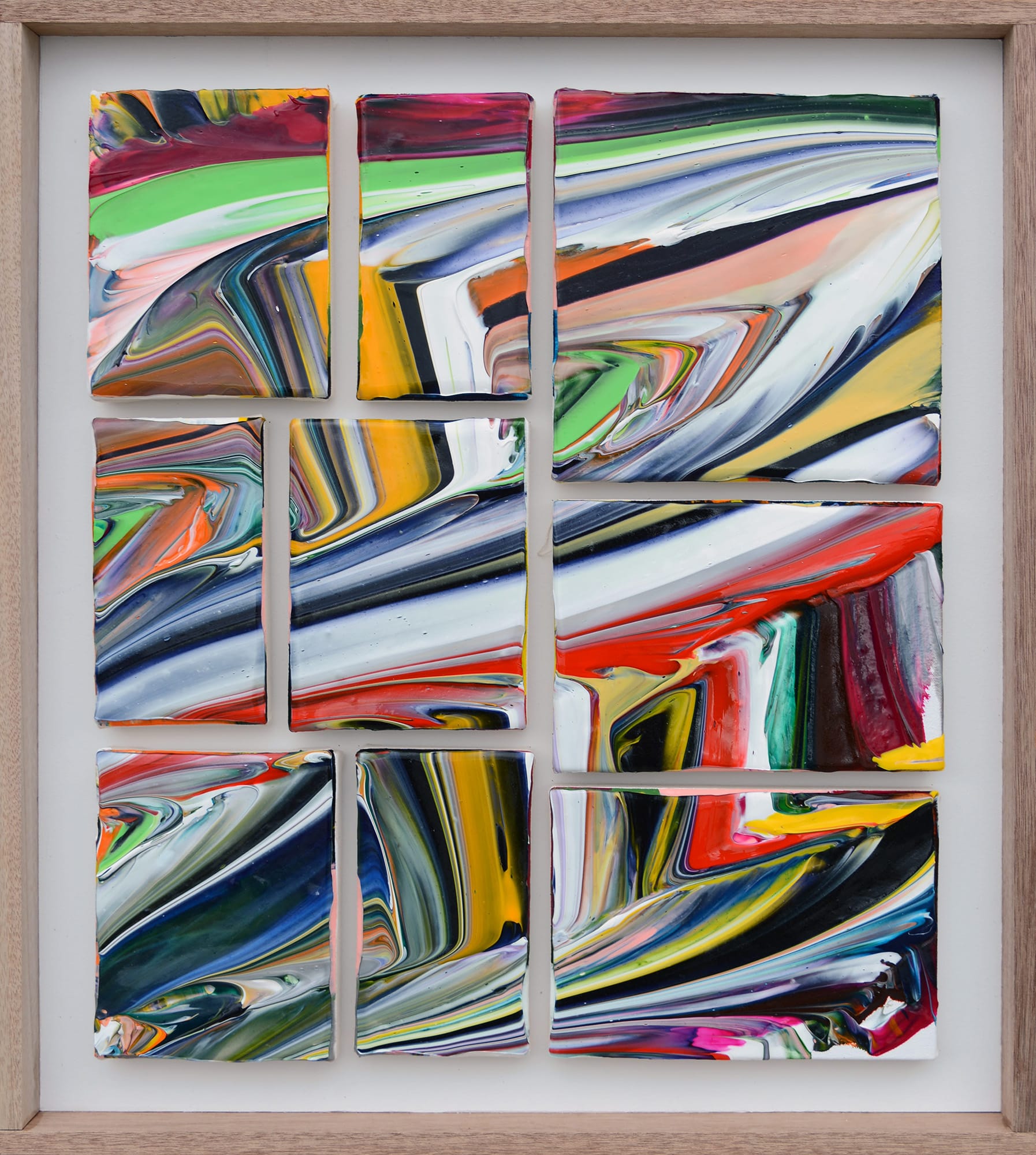 | fragment 8 (added a blur) 2022 Acrylic and Carborundum on Cotton 182×180mm Private Collection |