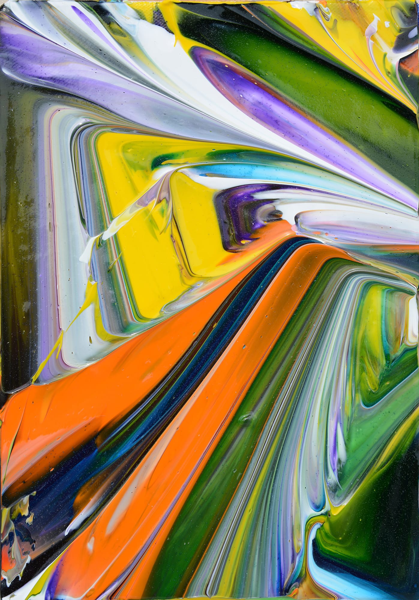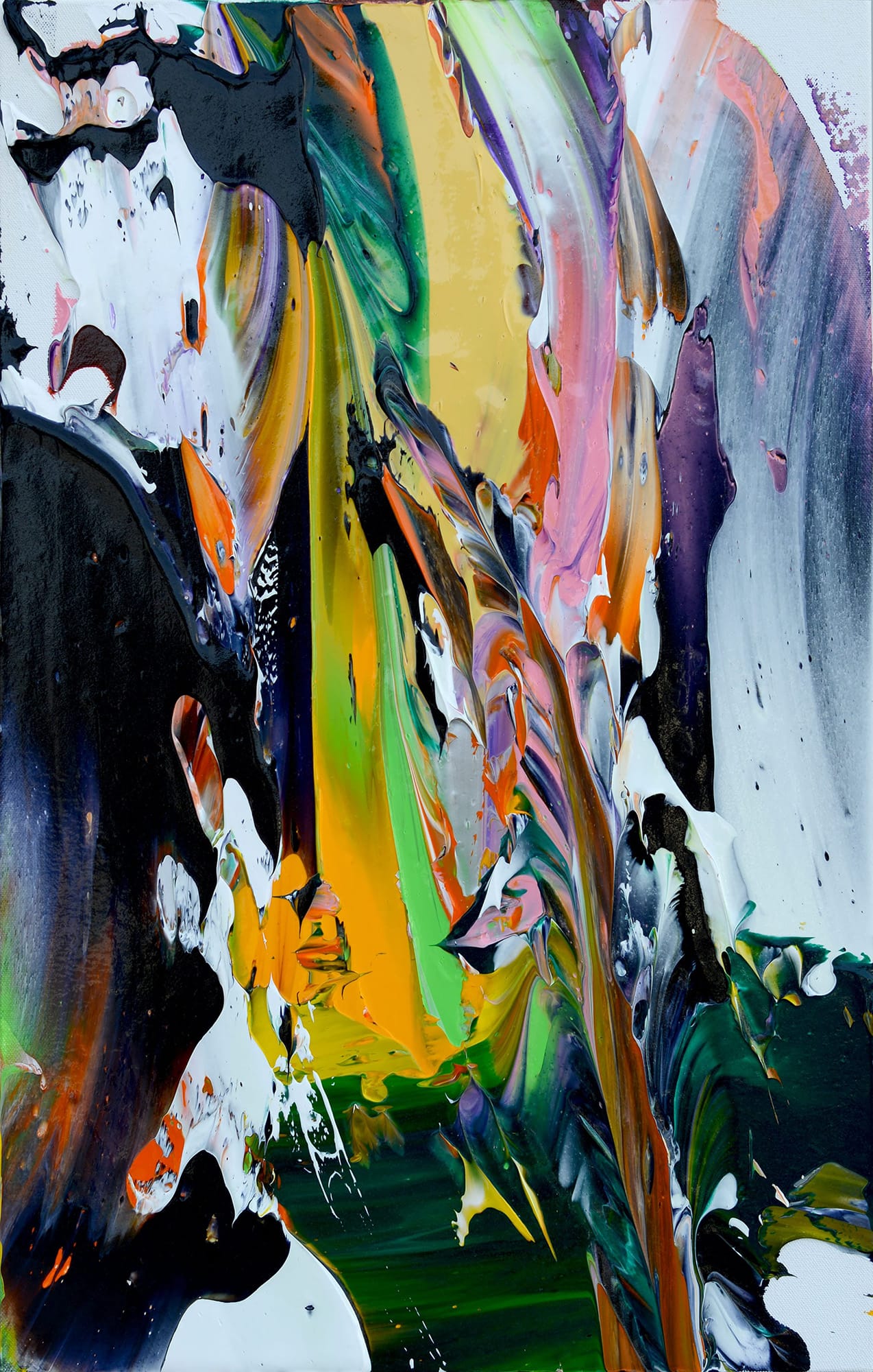 | 流星 (RYUSEI) 2021 Acrylic and Carborundum on cotton 275×162mm Private Collection |
