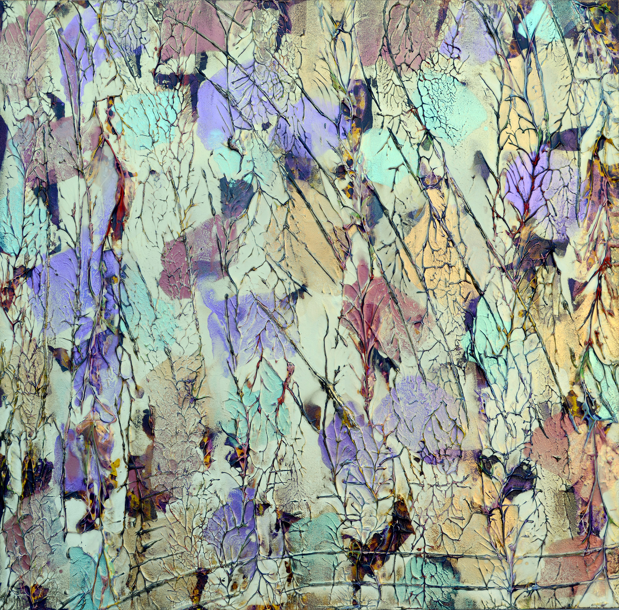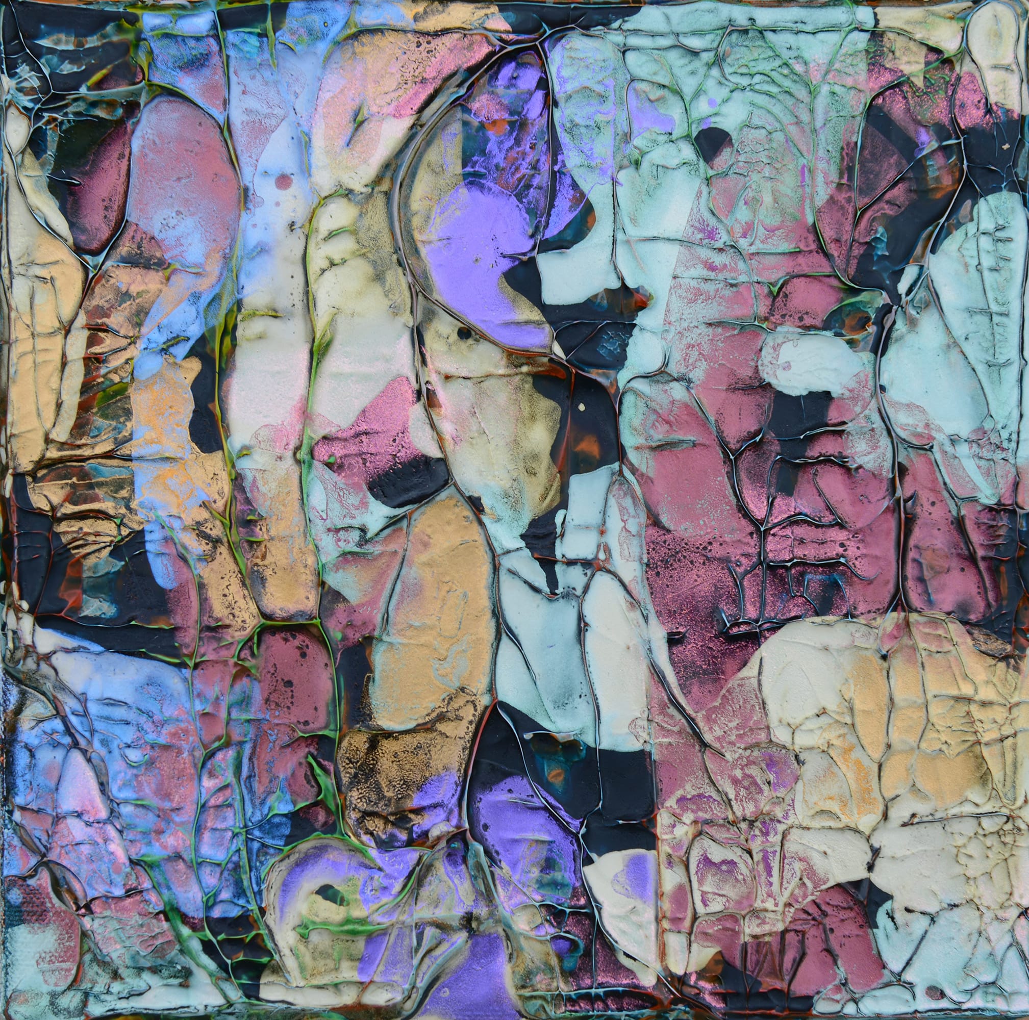 | cell division1(B) 2021 Acrylic and Carborundum on cotton 230×230mm Private Collection |