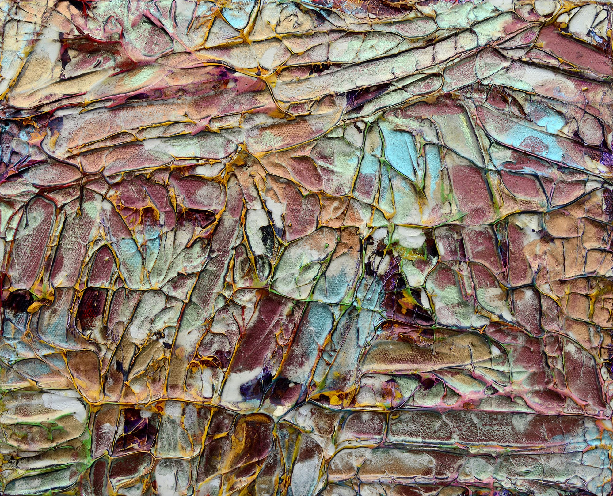 | cell division1(D) 2021 Acrylic and Carborundum on cotton 275×161mm Private Collection |