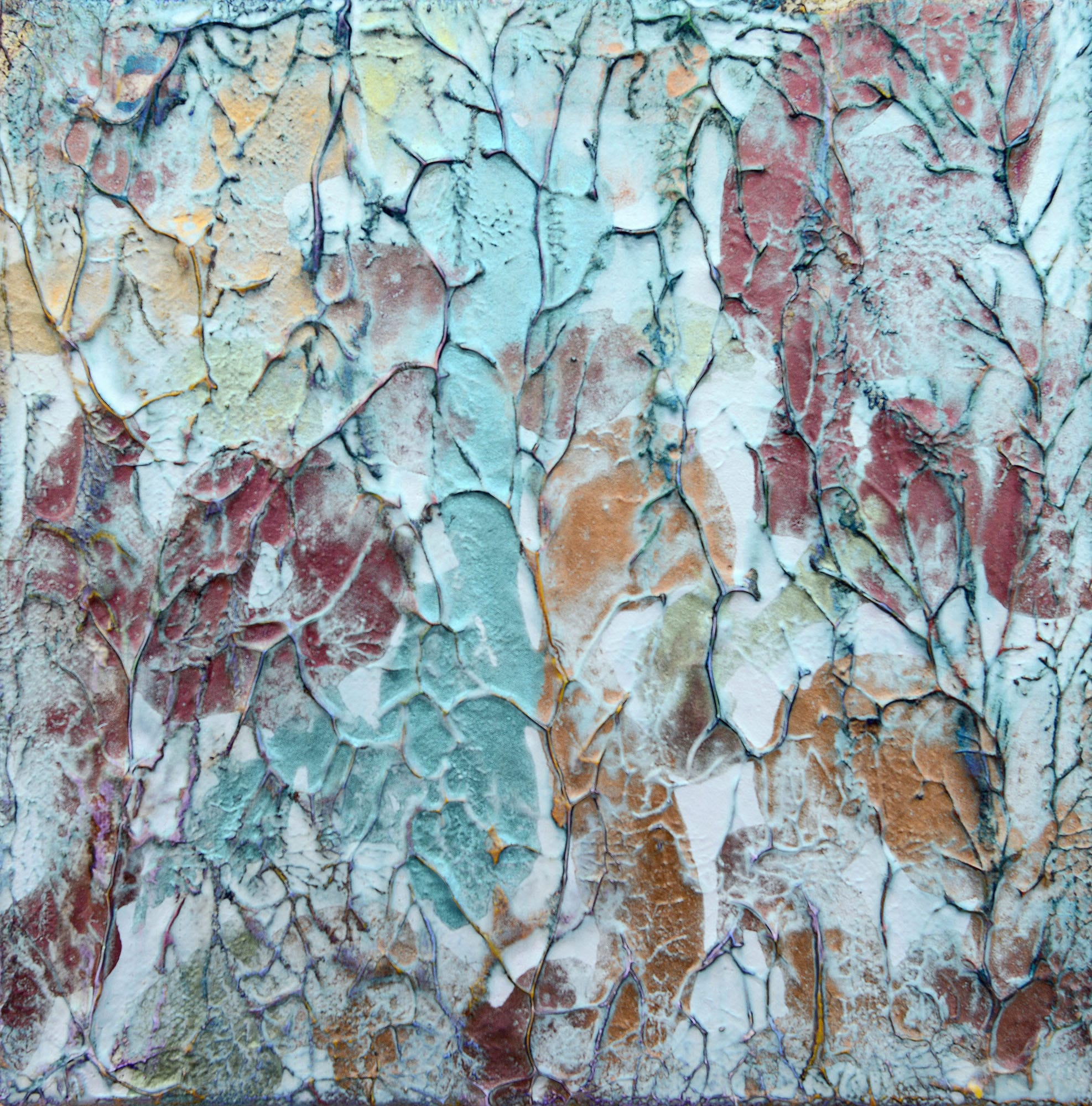 | cell division1(B) 2021 Acrylic and Carborundum on cotton 230×230mm Private Collection |